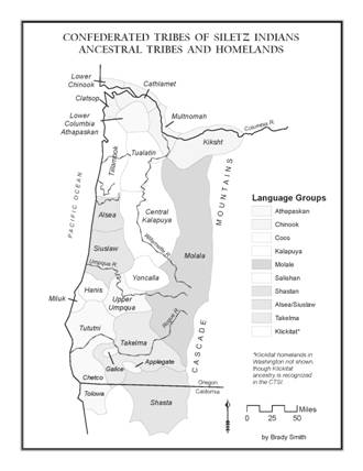 Our Athabaskan Language has many dialects. These dialects vary from region to region and even from village to village. In pre-contact times the area a person hailed from would be recognized by the dialect they spoke in. After our People were brought to the Siletz Reservation there were five major Languages spoken here. The major Language stocks were Athabaskan, Hokan, Penutian, Sahaptin, and Salish. Chinook Jargon became the Language that different speakers used to communicate with as well as English. With the passage of time each successive generation found itself with an ever smaller pool of speakers. When our Tribes were Terminated by the Federal Government in the 1950's, our Tribal Government was disbanded and our lands sold, our people were dispersed far and wide. Our Languages went unspoken except among our Elders. It would take another 20 years and the Restoration of our people to Tribal Status to rekindle any hope of Language Restoration.